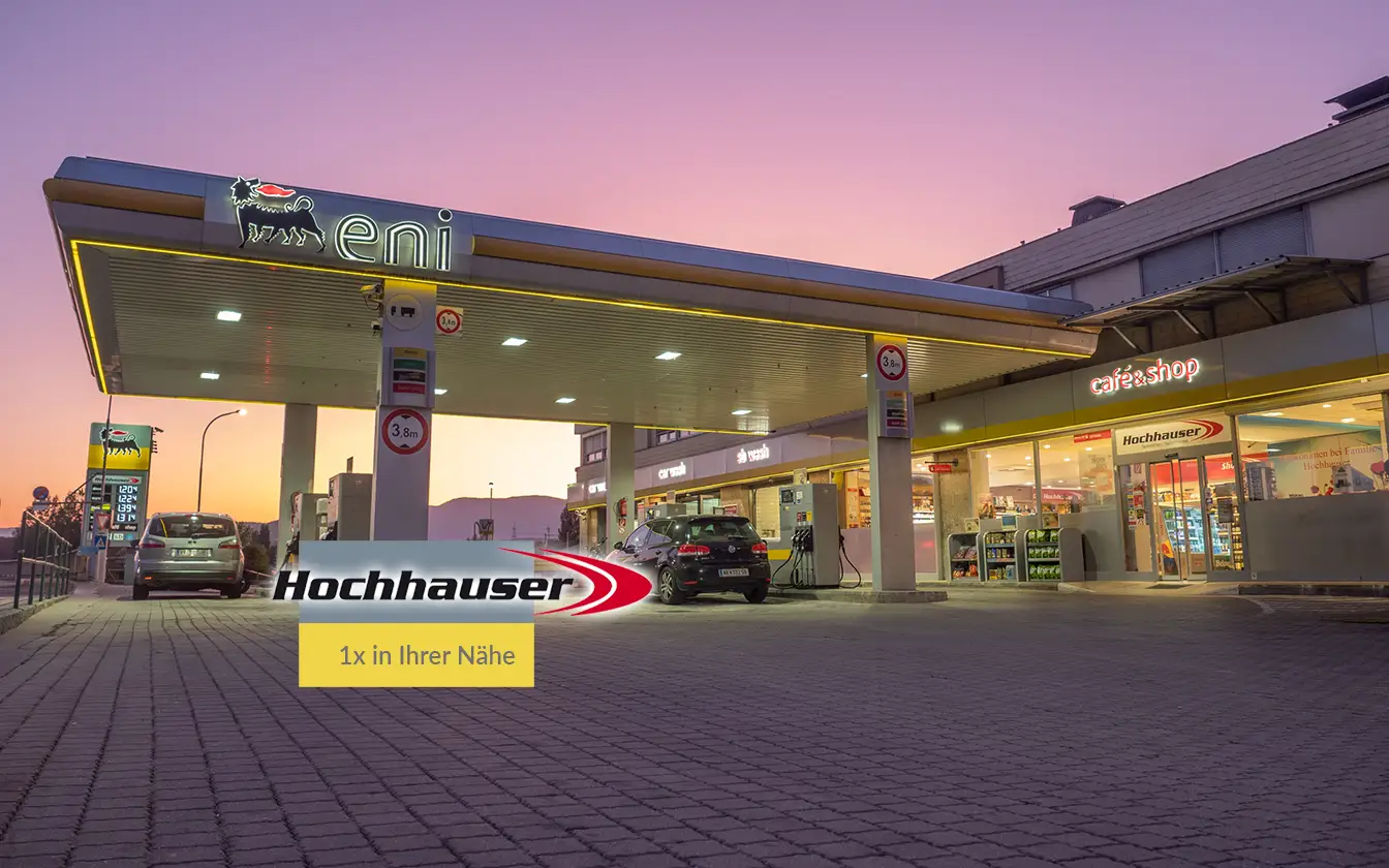 1924 als Lebensmittelgeschäft im Mühlfeld eröffnet, startete Johann Hochhauser einige Jahre nach der Gründung mit dem Mineralölhandel. Während seine Frau Anna Hochhauser die Leitung des Lebensmittelgeschäfts übernahm, kümmerte sich Johann um den Tankstellenbetrieb im Hof des Geschäfts. Um 1958 erbaute die Familie Hochhauser die Tankstelle in Neunkirchen, welche auch heute am selben Platz zu finden ist.